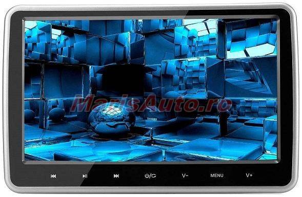Monitor auto cu prindere pe tetiera, ecran de 10.1 inch HD, citire USB-uri si SD Card. Redare desene animate, muzica, poze, clipuri video, filme in format mkv, avi, dvix, mp4, mp5 chiar si cele la rezolutie 1080p. Capabilitate de a transmite sunetul prin transmitator FM direct in sistemul audio al masinii. Optional se pot achizitiona casti fara fir, care se conecteaza prin infrarosu. Monitorul vine in pachet cu suportul universal de prindere si incarcator de masina. Eleganta si stil pentru masinile personale, taxi si transport privat.
